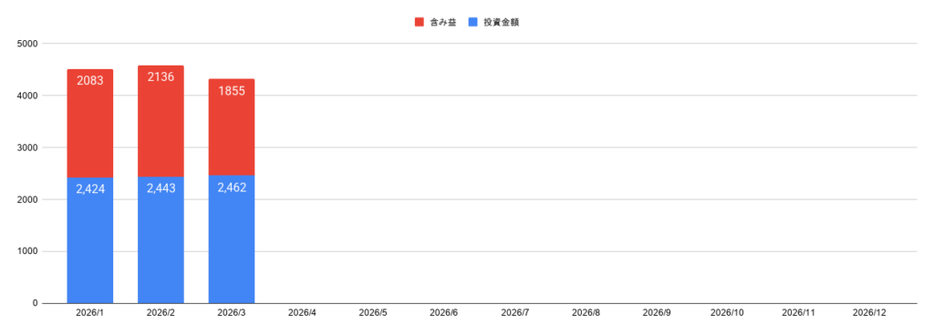 投資総額が最高値から-200万円くらい下がっているのは少し寂しい感じです