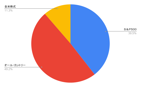 「S&P500」と「全米株式」がかなりの比率を占めています、直近ではアメリカが経済トップを進んでいきそうですが、遠い未来は分からないので「オール・カントリー」も半分くらい保有しています。